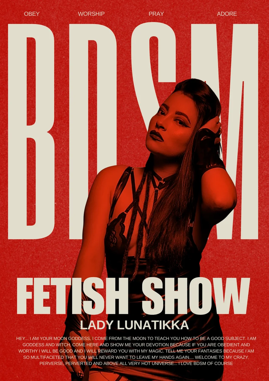 Hey... I am your Moon Goddess, I come from the moon to teach you how to be a good subject. I am Goddess and Witch, come here and show me your devotion because if you are obedient and worthy I will be good and I will reward you with my magic. Tell me your fantasies because I am so multifaceted that you will never want to leave my hands again.... Welcome to my crazy, perverse, perverted and above all very hot universe... I love BDSM of course